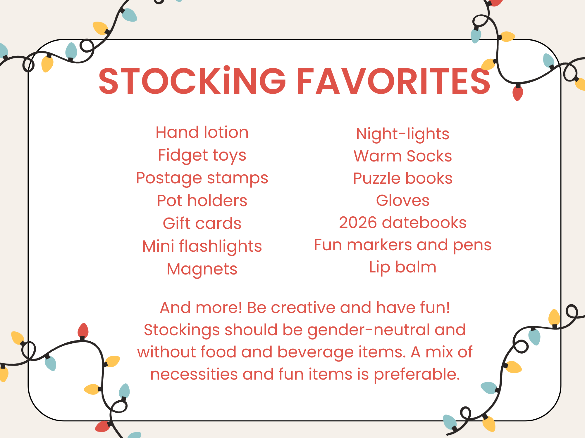 LIFE’s annual Holiday Project brings much-needed connection and joy to seniors in our programs, many of whom may spend the holiday season alone or without the company of loved ones. You can help brighten their holidays by donating a fully stuffed stocking! Thanks to the generosity of compassionate people like you, seniors in a variety of LIFE’s programs will receive not only a stocking filled with fun and essential items but also a heartwarming visit that lifts their spirits. Your kindness can truly make a lasting difference this holiday season.